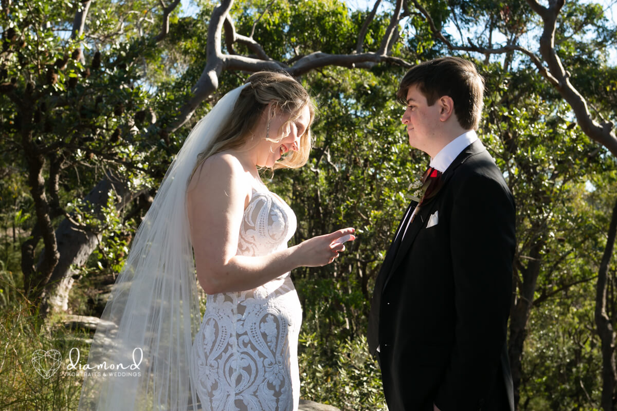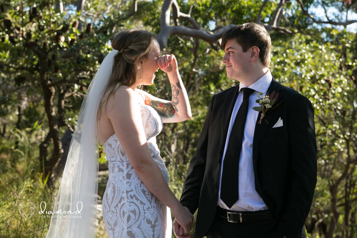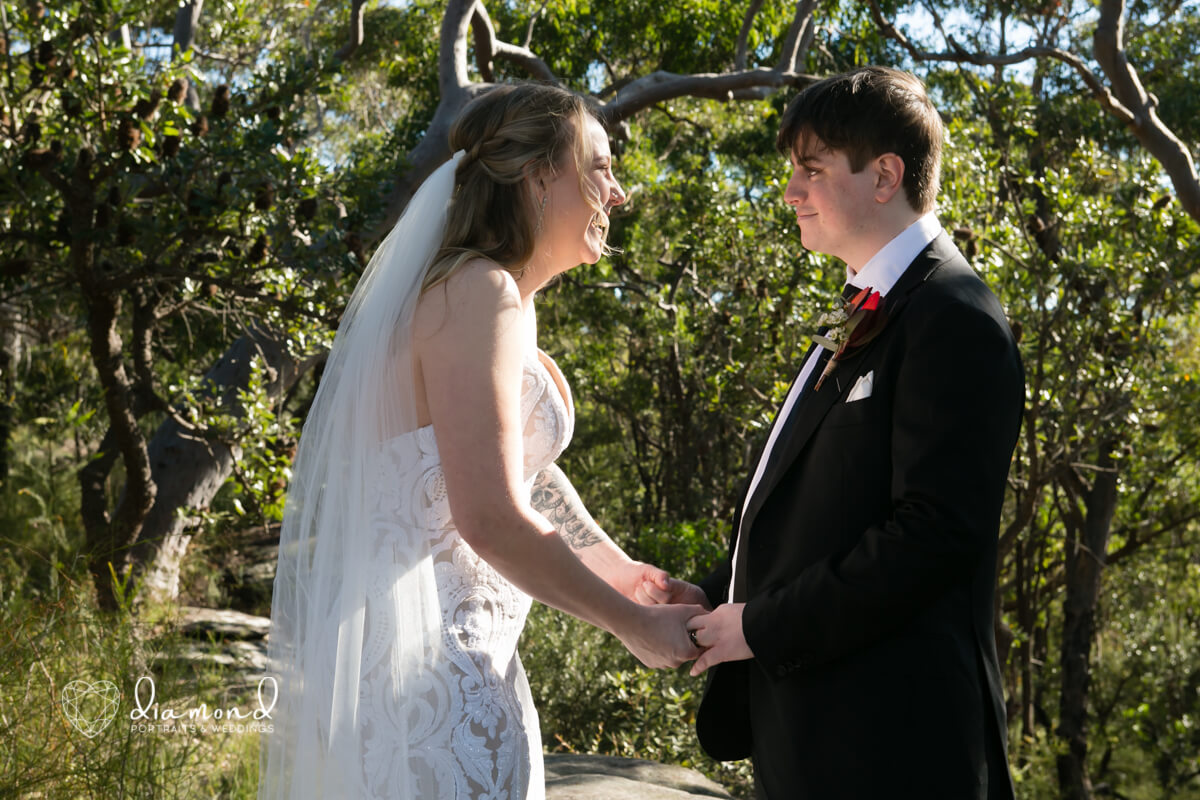 They are simple, beautiful, and just so personal. Melissa and Jacob said their I do’ s in such a gorgeous, private location. Nestled out the back of Loftus in the beautiful Sutherland Shire.With their closest of family and friends; and a kookaburra-!! You had to be there 😉
