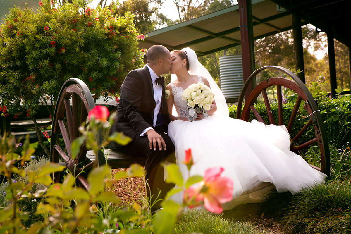Belinda and George had the most spectacular wedding here. They chose a church ceremony but had all their formal photos on the grounds of Ottimo House . Amazing rolling hills, a lake, rustic sheds, beautiful sunsets. And the list keeps going. Beautifully paved paths and manicured gardens just outside the venue, and an old wooden horse drawn carriage for some more old world appeal. Can you believe there are also some horse stables just up the hill that are also open to you bringing horses down for your photo shoot, seriously, horses!!! You just need to keep your bouquet away from then, lol, or they will eat it!
