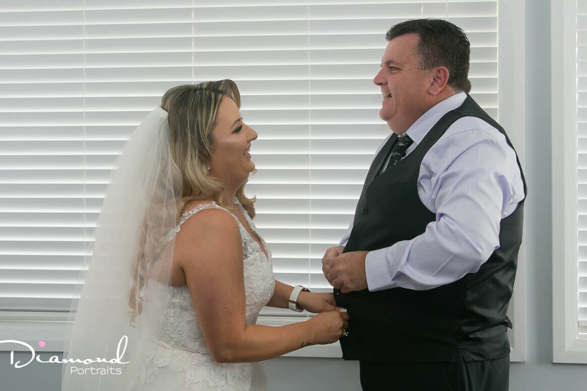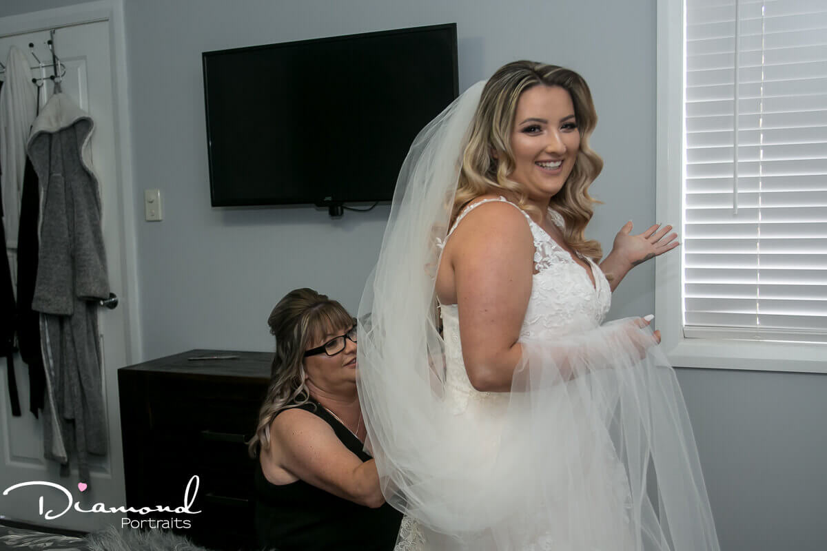 Amanda, mum and dad, bridesmaids and cute flower girls had a real flawless bridal preparation. Stress free, lots of laughs, no dress dramas.