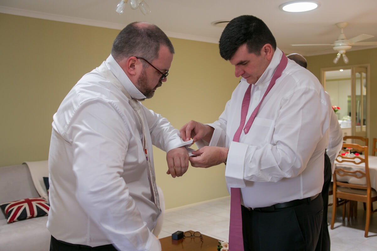 The bride’s house no matter what is always a little crazy! It’s just weddings, the morning seems to go super smoothly, and then the photographer arrives and its panic stations. 🤣. Mind you,  the boys were a little manic too, who would have thought that tying a tie could be so complicated!